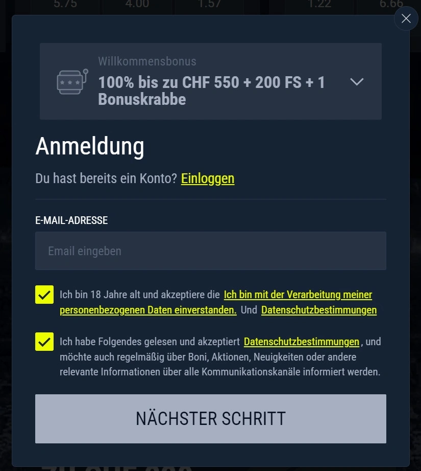 ERSTE EINZAHLUNG VORNEHMENAnmeldebonus erhalten
